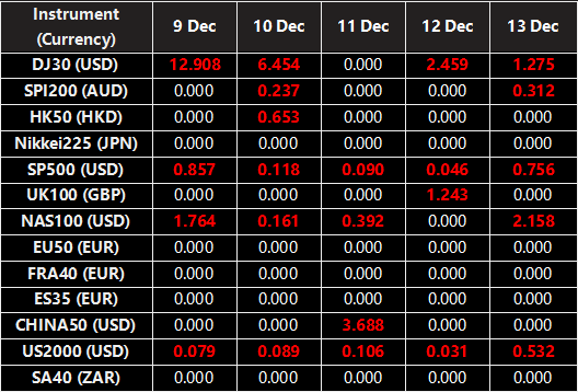 Please be advised that the dividends of the following index CFDs will be adjusted by upcoming ex-dividend dates. The comment for trading index CFDs will be in the following format “Div&<Product Name>&<Net Volume>” which show in the balance after the close of the day before the dividend payment date.