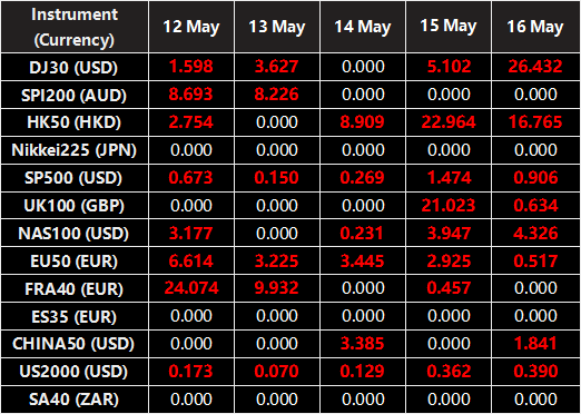 Please be advised that the dividends of the following index CFDs will be adjusted by upcoming ex-dividend dates. The comment for trading index CFDs will be in the following format “Div&<Product Name>&<Net Volume>” which show in the balance after the close of the day before the dividend payment date.